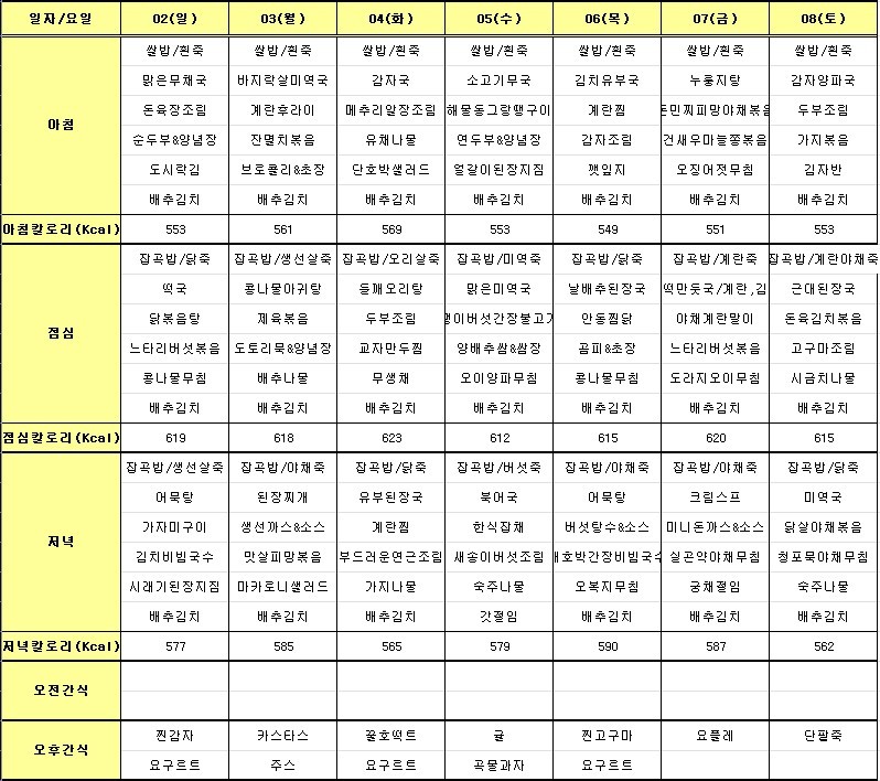 2025년 11월 1주차 식단 페이지 정보 작성자 관리자 댓글 0건 조회 53회 작성일 25-11-08 11:29 목록 본문 이전글2025년 11월 2주 식단표 25.11.08 댓글 0 댓글목록 등록된 댓글이 없습니다.